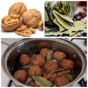 Add the bay leaves and walnuts to the pot. After 5 minutes of boiling, check to see what happened. When you add bay leaves and walnuts to…