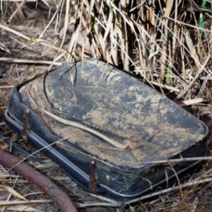 This woman found an old and dirty suitcase, abandoned in a bush