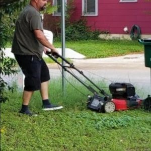 “This is my dad, mowing my mom’s lawn. They’ve been divorced 28 years. My mom has bad knees, and my stepdad works out of town. When my…